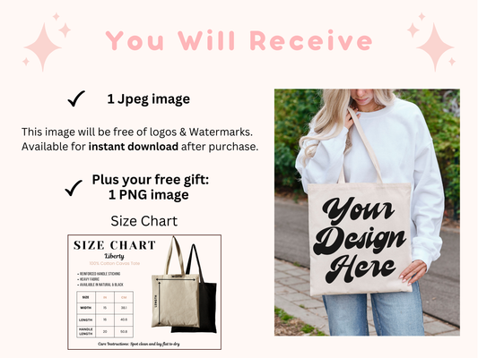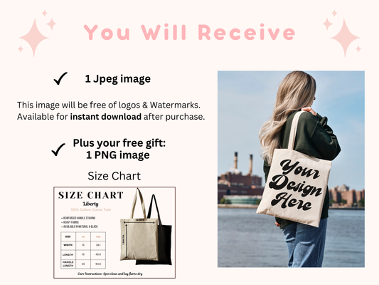 Boho Style Tote Mockup - Customizable Liberty Tote with Model Lifestyle Photo and Natural Image