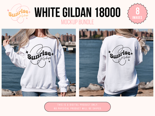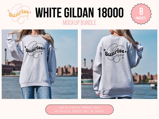 White Gildan 18000 Mockup Bundle - High-Quality Crewneck Sweatshirt Mockups for Print-on-Demand Designs
