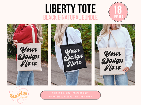 Tote Mockup Bundle - Black and Natural Liberty Canvas Tote Set with Editable, Realistic Shopper Bag Designs